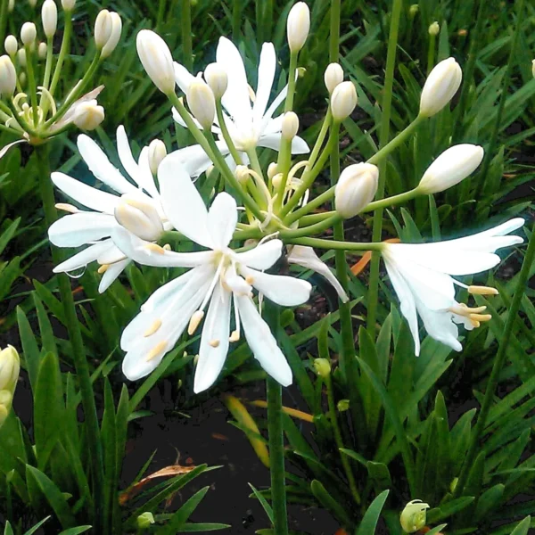 Cette variété se distingue par sa taille plus petite et ses élégantes fleurs blanches en ombelle qui s’épanouissent tout l’été. Avec son port compact et son feuillage fin, elle est parfaite pour les petits jardins, les balcons ou les terrasses. Son allure délicate apporte fraîcheur et luminosité à tous vos espaces verts.